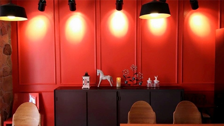 강렬한 태양빛을 머금은 듯한 토마토색상과 따뜻한 조명으로 즐겁게 식사할 수 있는 공간이 완성되었습니다.